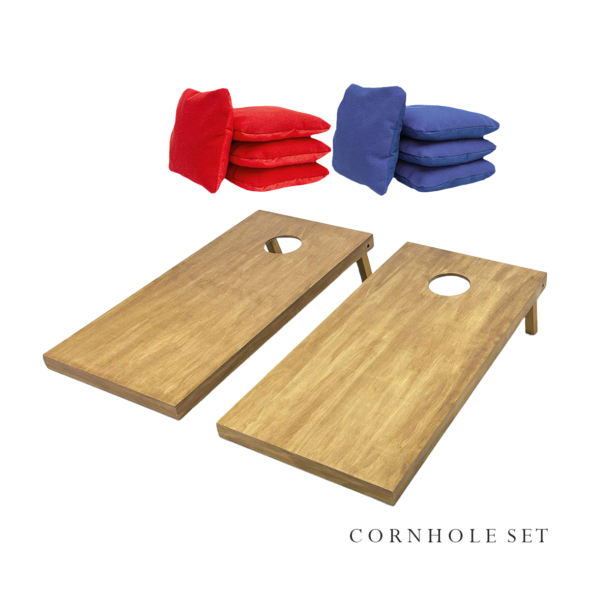 Summer Game Night Package (1) Modern Wood-Grain Rectangular Propane Fire Pit (4) Adirondack Weathered Wood Resin Chair (4) Upholstered Aztec Pouf/Ottoman 18″ (4) Hand Finished Vintage Metal Lantern 19.5″ (4) Hand Finished Vintage Metal Lantern 13″ (1) Extra Large Jenga Set (Stacks up to 4′ Tall) (1) Light Brown Cornhole Set (Throwing Bags Included) (2) Ladder Ball (Full Set) All Packages are Customizable!